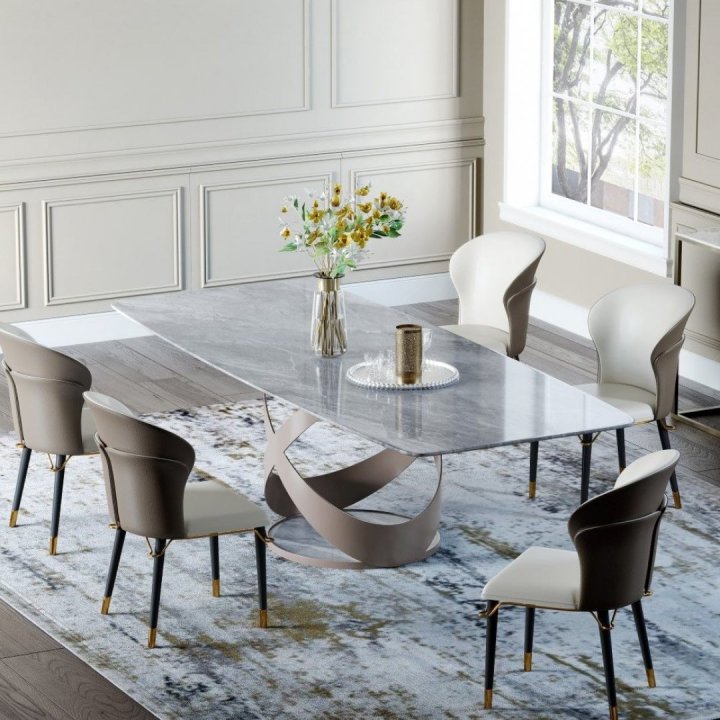 Tamamen doğal olan ve aynı zamanda da şıklığın yemek odası dekorasyonlarındaki yansıması olan Calacatta Mermer, mermer yemek masası modelleri olarak sıklıkla karşımıza çıkar.