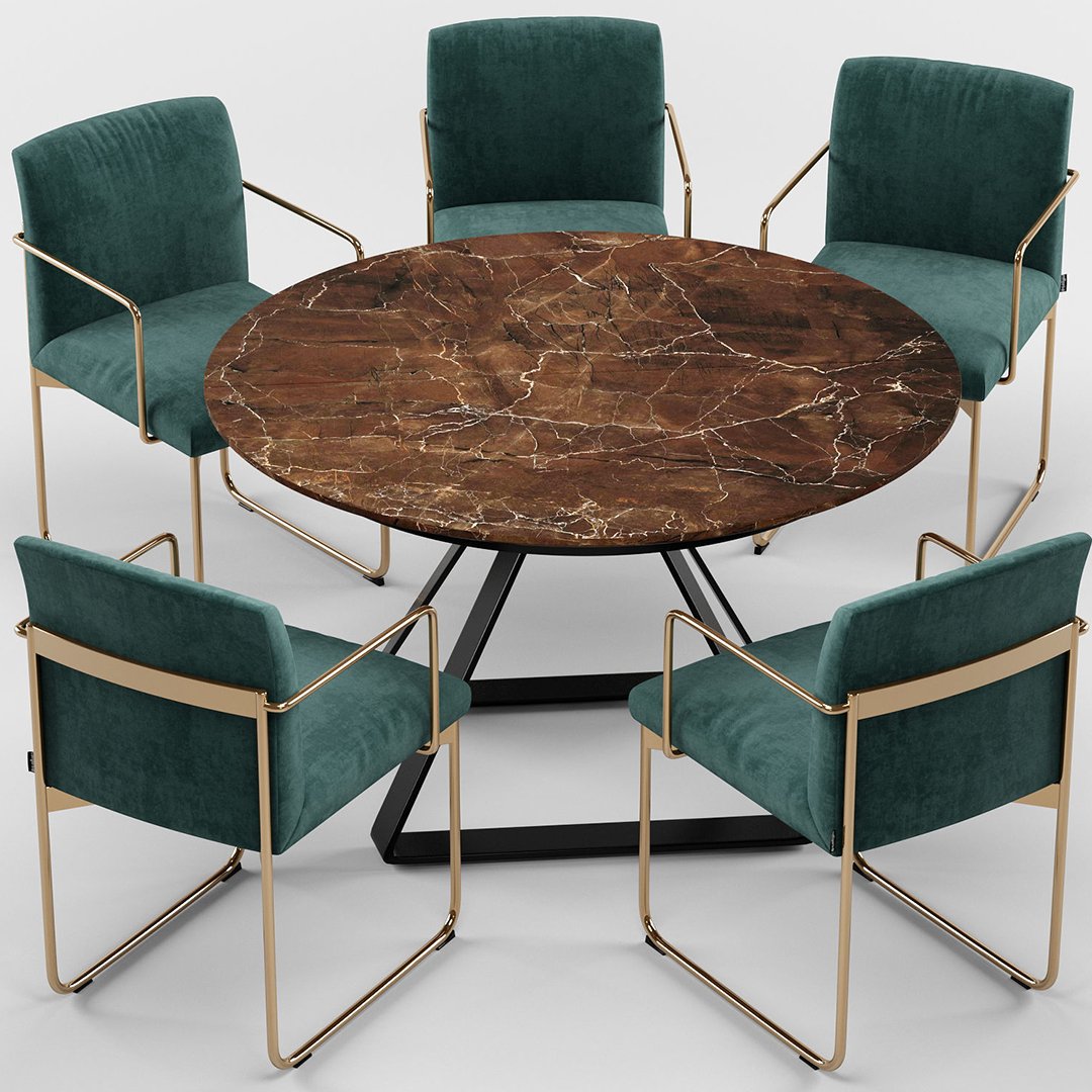 Zarif ve güçlü görünümüyle dikkat çeken bu kahverengi granit yemek masası, yuvarlak formu sayesinde samimi ve şık bir kullanım sunuyor. Doğal kahverengi zemin üzerinde altın ve beyaz damar detayları, masaya benzersiz bir estetik katarken, modern metal ayak tasarımı sağlamlığı ve dengeyi bir araya getiriyor. Dayanıklı yapısıyla uzun yıllar ilk günkü şıklığını korur. Hem estetik hem işlevsel yapısıyla yemek odalarınızda farklı bir atmosfer yaratır.
