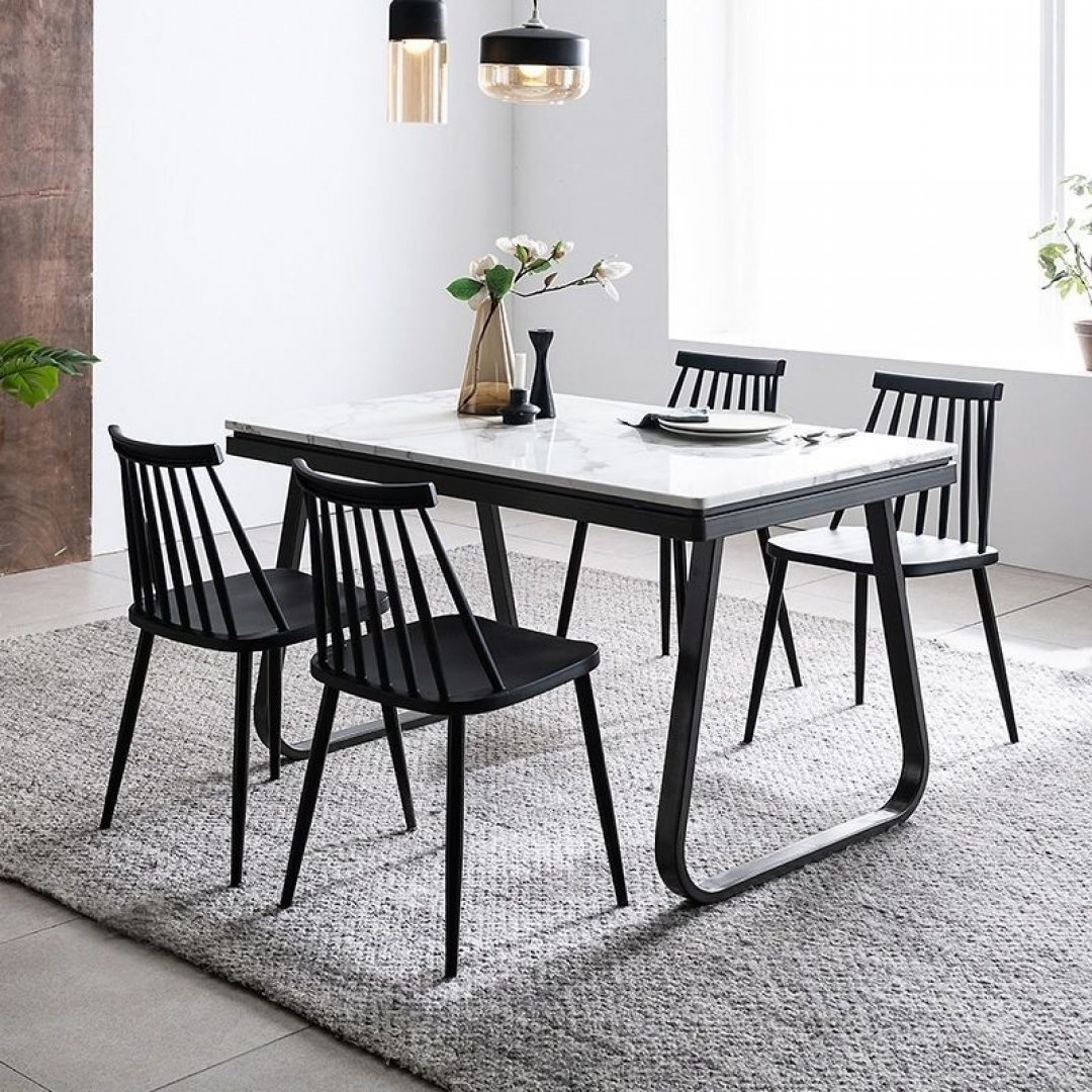 Beyaz mermer desenli masa tablası, çizilmeye ve lekelere karşı dayanıklı yüzeyi ile uzun ömürlü kullanım sunar.