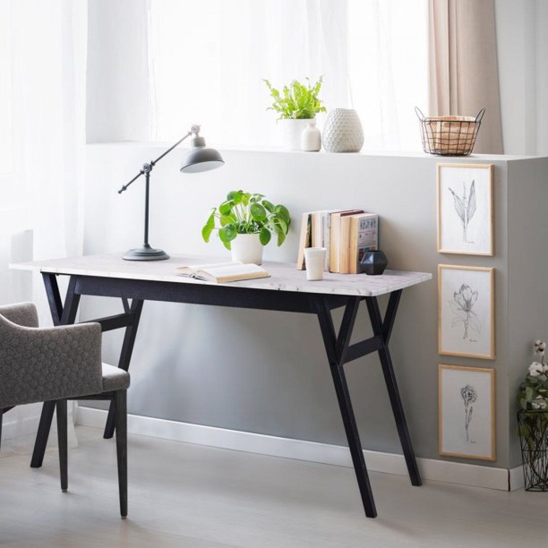 Üst yüzeyinde kullanılan mermer desenli kaplama, sade ve zarif görünümüyle çalışma alanınıza şıklık katarken,geniş üst yüzeyi, çalışma sırasında bolca alan sağlayarak bilgisayar, kitaplar ve dekoratif objeler için rahat bir kullanım sunar. Temizlenmesi kolay yapısı sayesinde günlük kullanımda pratiklik sunar.