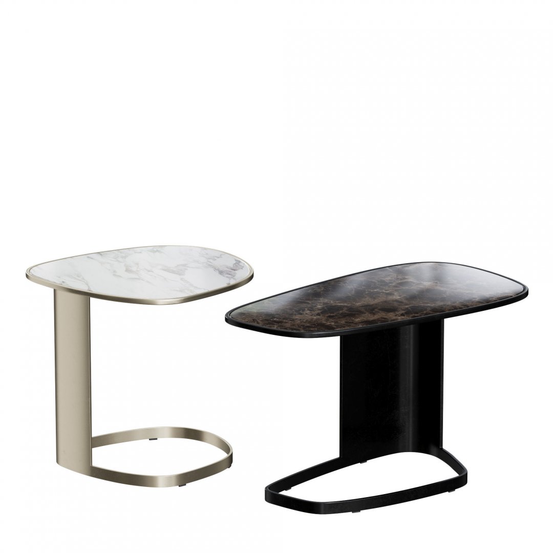 Farklı boyut ve renk seçenekleriyle tasarlanan bu ikili granit sehpa seti, modern iç mekânlara estetik bir bütünlük kazandırıyor. Biri beyaz damar detaylı açık ton granit, diğeri koyu kahve-siyah granit yüzeyiyle kontrast bir uyum yakalarken, zarif metal ayak tasarımı mekâna şıklık katıyor. Minimal formu sayesinde hem dekoratif hem de fonksiyonel kullanım imkânı sunar.