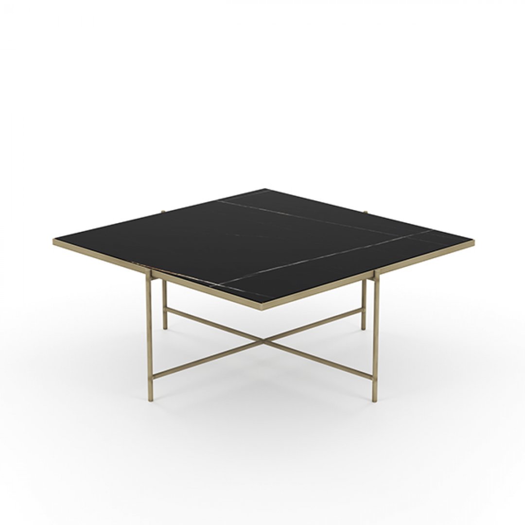 Modern tasarımı ve zarif detaylarıyla öne çıkan bu kare orta sehpa, göz alıcı mermer yüzeyi ve şık metal ayaklarıyla yaşam alanlarınıza sofistike bir dokunuş katıyor. Siyah mermer yüzey, ince beyaz damarlarıyla derinlik kazanırken; altın bronz tonundaki çapraz ayak yapısı tasarıma güçlü bir denge ve zarif bir kontrast ekliyor.