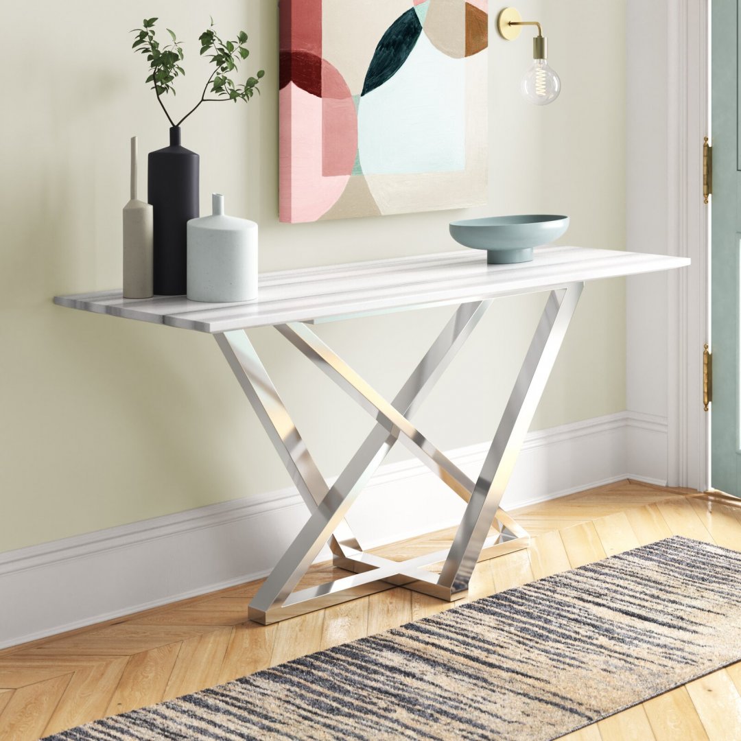 Zarif mermer yüzeyi ve geometrik ayak tasarımıyla öne çıkan bu mermer dresuar, yaşam alanlarınıza güçlü ve modern bir karakter katıyor. Çapraz metal ayak yapısı, mekâna dinamik bir hava verirken; beyaz mermer üst tabla, ferah ve sofistike bir görünüm sağlıyor. Hem dekoratif hem de işlevsel yapısıyla salonlardan antrelere kadar her alanda şıklığı tamamlıyor.