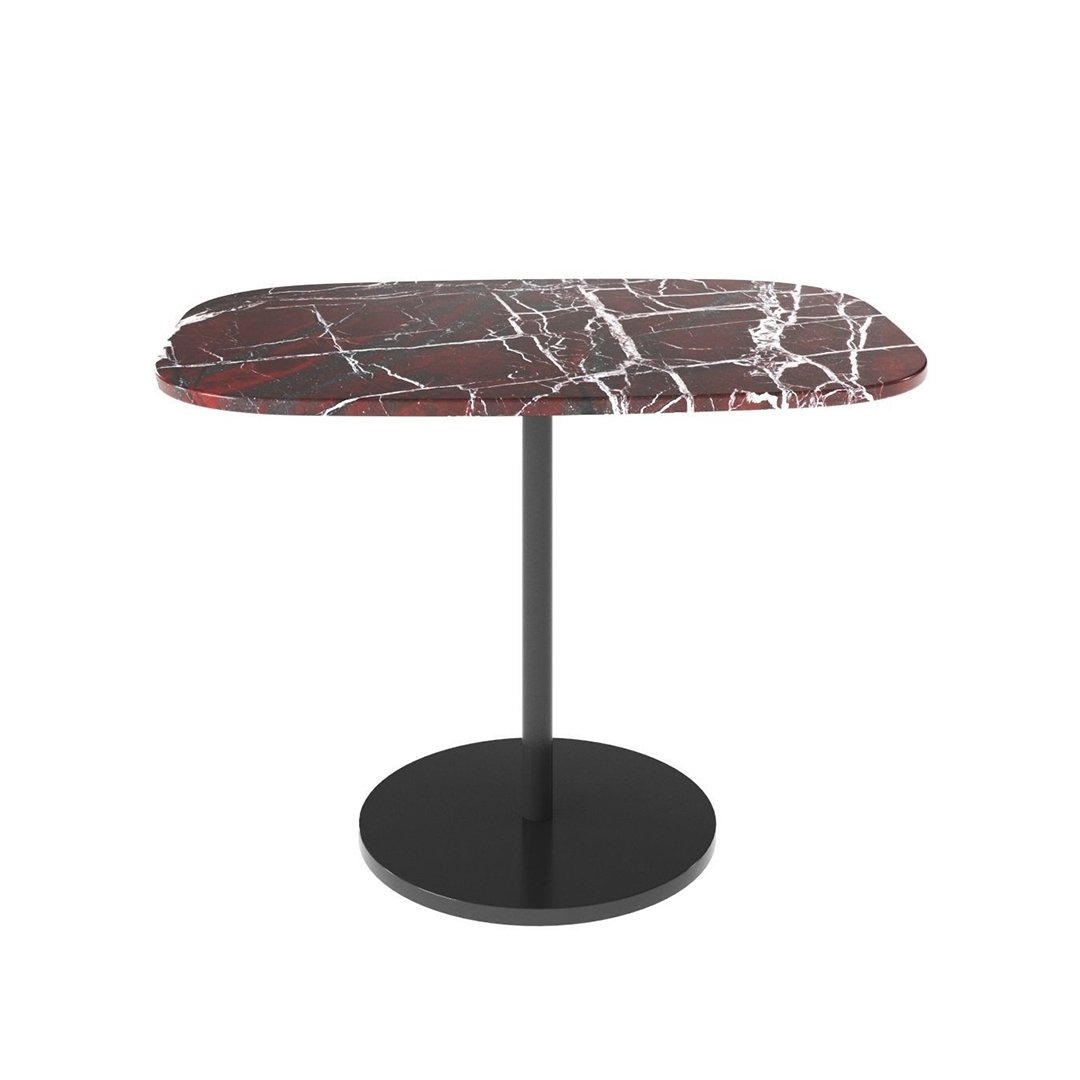 Renk: Bordo mermer üzerinde beyaz damar detayları, siyah metal ayak