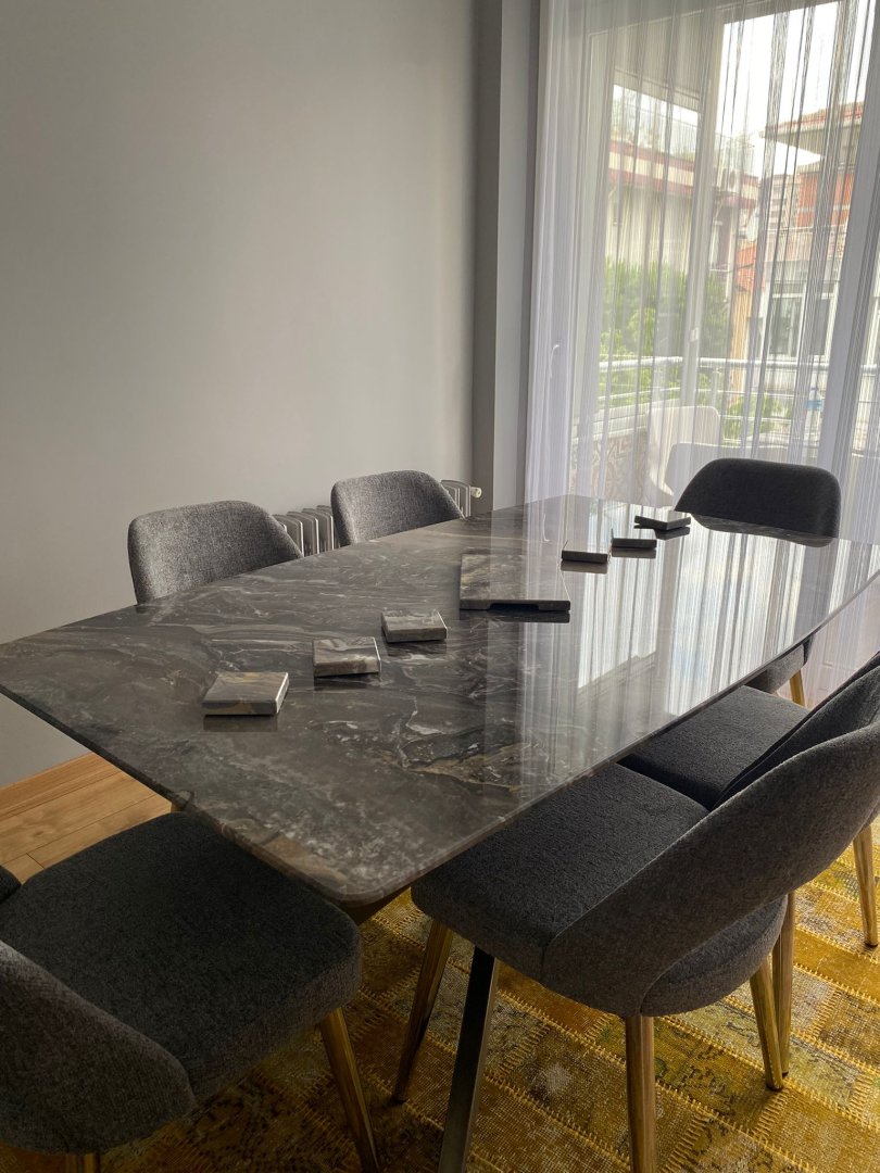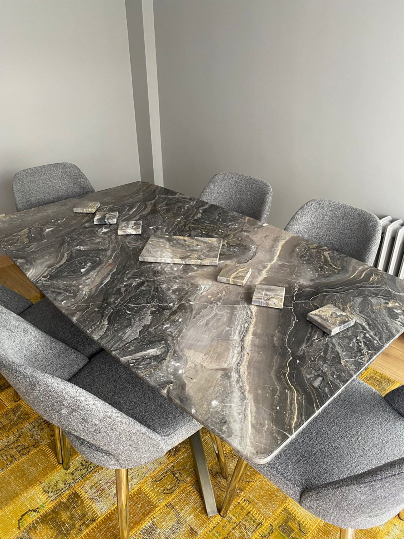 Tasarım mermer mobilya alanında kendini geliştiren firmamız, satmış ve üretmiş olduğu modellerinde Türkiye ve yurt dışından getirtmiş olduğu en özel doğal taşları kullanmaktadır. Ancak doğal ve benzersiz olan bu taşlar, ürünlerde farklılık gösterebilmektedir. Bu nedenle de ürünlerimizi satın alırken tablaların sabit kalacağını ancak doğal taşlardaki desenlerin değişeceğini unutmadan göz önünde bulundurmanız gerekmektedir.