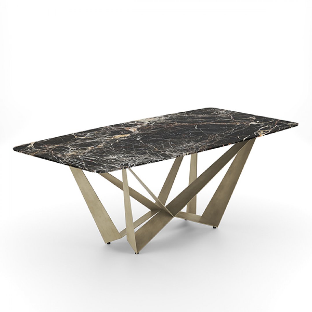 Siyah mermerin asil duruşu ile altın tonlu geometrik metal ayakların göz alıcı birleşimi, bu masayı sıradanlıktan çıkararak yaşam alanlarının merkezine taşır.